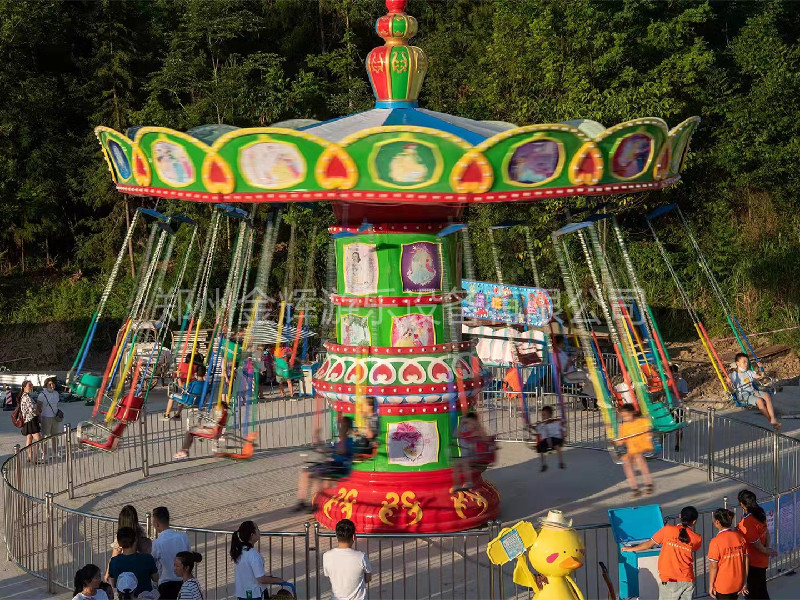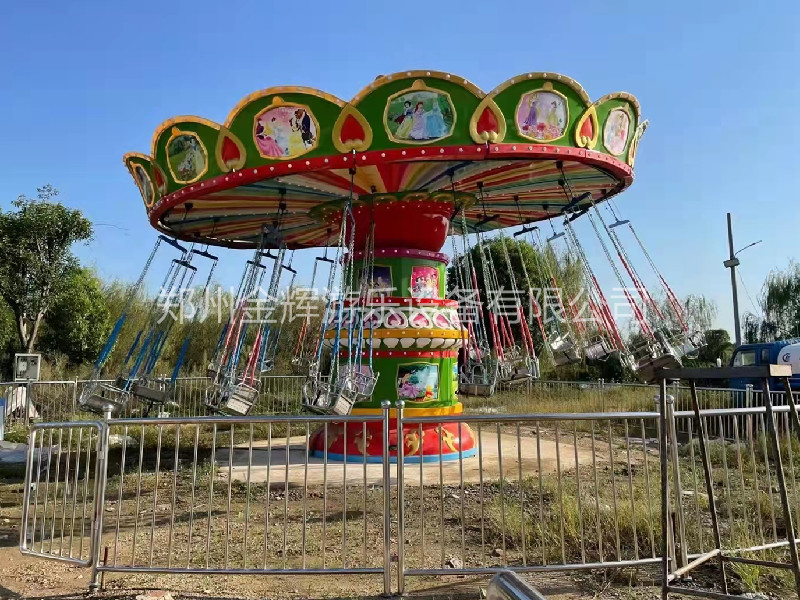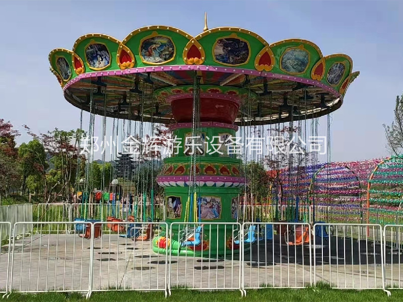 旋轉(zhuǎn)飛椅是項(xiàng)十分受大眾喜歡的游樂設(shè)施。颶風(fēng)飛椅像是把大傘(或能搖頭的大傘)下吊著很多把靚麗 的吊椅,在大傘轉(zhuǎn)動(或搖頭)時,吊椅在空中波浪起伏地旋轉(zhuǎn)飛舞。設(shè)備轉(zhuǎn)動時,乘坐在吊椅上的乘客猶如在藍(lán)天飛舞,體驗(yàn)刺激收獲快樂。颶風(fēng)飛椅是集旋轉(zhuǎn)、升降、變傾角等多種運(yùn)動形式于體的大型飛行塔類游藝機(jī)。當(dāng)傘形轉(zhuǎn)盤和中間轉(zhuǎn)臺反向旋轉(zhuǎn)啟動時,塔身徐徐上升,此時轉(zhuǎn)盤搖擺,飛椅呈波浪蕩漾狀,游客猶如在空中飛翔、飄蕩,海闊天空、驚心動魄。設(shè)備巍峨雄偉,它柔和了絢麗的燈飾和七彩繽紛的圖案設(shè)計,造型華麗,是目前游樂場上 漂亮 吸引人的游藝機(jī)之,也是標(biāo)準(zhǔn)的主題公園或現(xiàn)代游樂場的項(xiàng)目之。