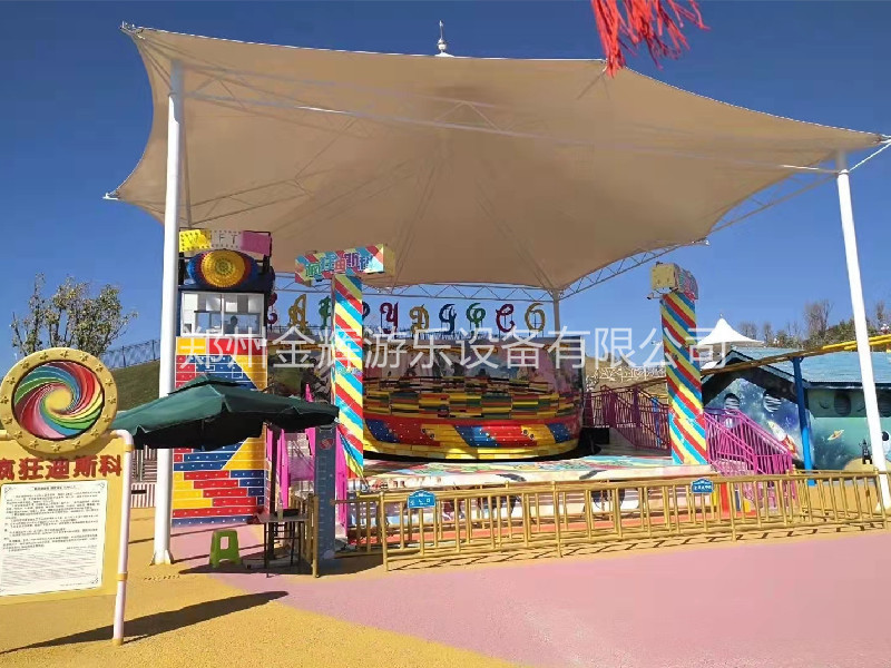 迪斯科轉盤又名大家顫,太空迪斯科,它是種常見的游樂設施,很多大型游樂園、公園里就有。它是個大圓盤,能翻滾,轉動做十多種運動。游客就在大圓盤上的沙發(fā)上圍坐成周,伴隨富有節(jié)湊的音樂,身體隨著圓盤運動。當人坐在上面時,并不是固定的!圓盤運行時如大海波濤顛簸起伏,又如太空飛碟,變化無窮,時快時慢。